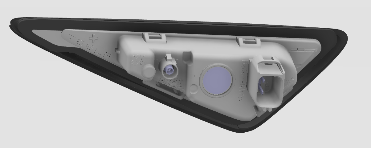 2021+ Model X side repeaters have an integrated camera for Autopilot functions.The side repeater lights are controlled by vehicle battery controller (VCBATT) for the left side repeater and front vehicle controller (VCFRONT) for the right side repeater.