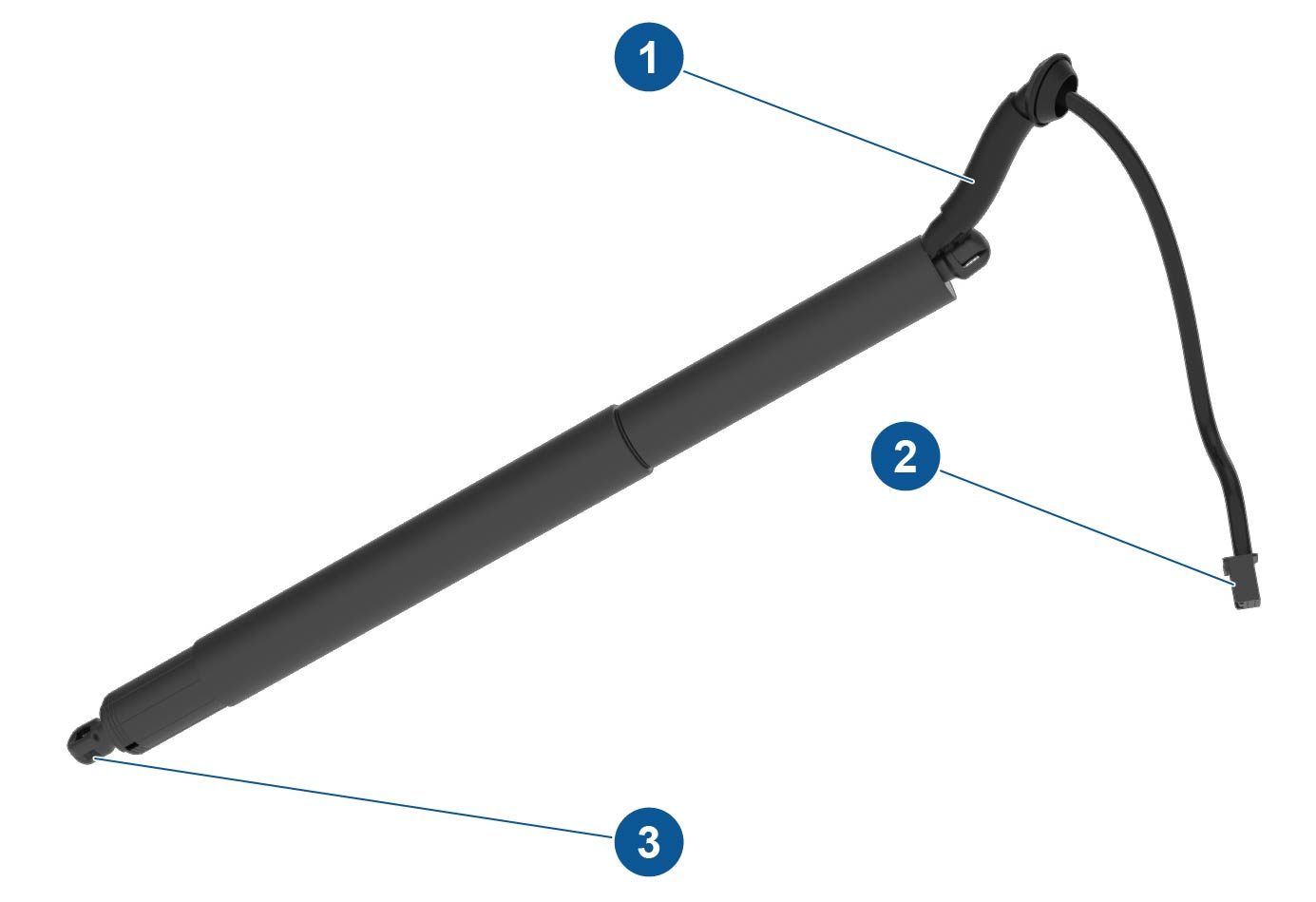 The power strut is an electrical actuator driven by VCLEFT and contains two hall sensors to track the position of the liftgate.