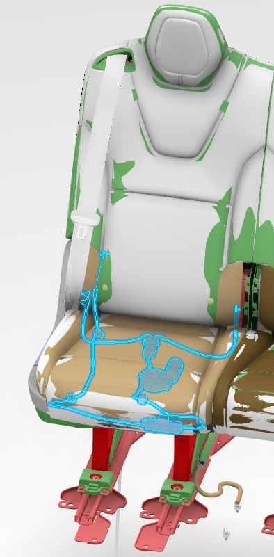 The 40% easy entry recliner release actuator is located in the seat cushion. This actuator is connected to a recline splitter cable assembly that has a single cable which releases the entire seat back. The recline splitter box allows the manual track handle to connect to the same cable which releases the entire seat back. The easy entry recliner release actuator is also connected to a cable that splits between the inboard and outboard side of the back rest. These cables release an easy entry stopper assembly which prevents the back rest from traveling further forward than a 45 degree angle. Because there are 3 cables in total, it is possible for the seat back to release but not lock in the 45 degree position, this would likely be an issue with the cable assembly or the EZ Entry Stopper Assembly.