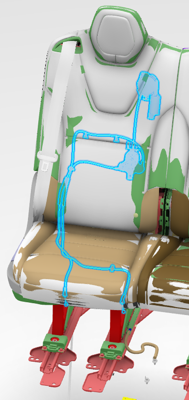 Occupant sensors are distributed throughout the cushion to help prevent situations where small items might trigger the seat belt reminder indicator. At the time of publishing this document, the resistive pad, or seat belt reminder, located in the second row cushion is not a serviceable component. This is due to the infrequency of which this part needs to be replaced as well as current production capability.